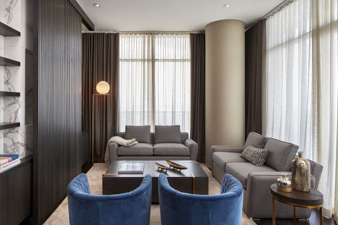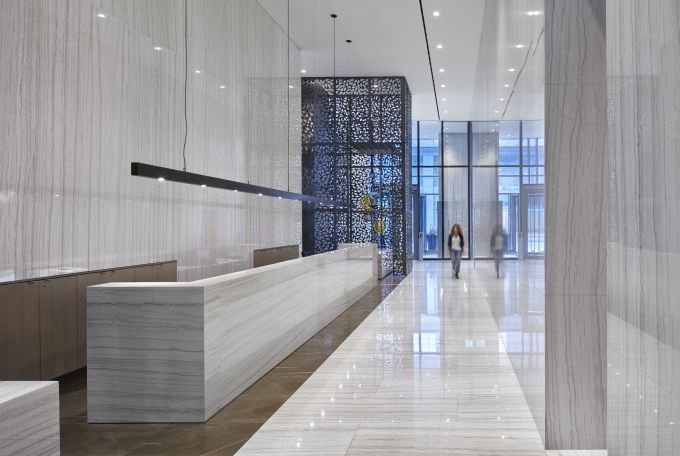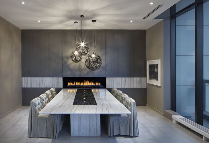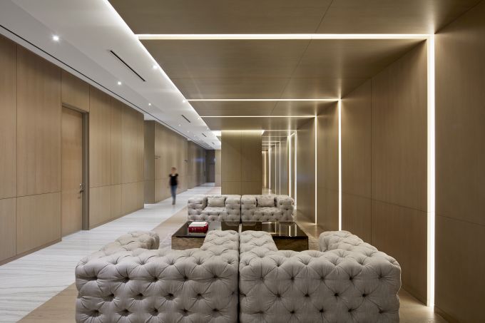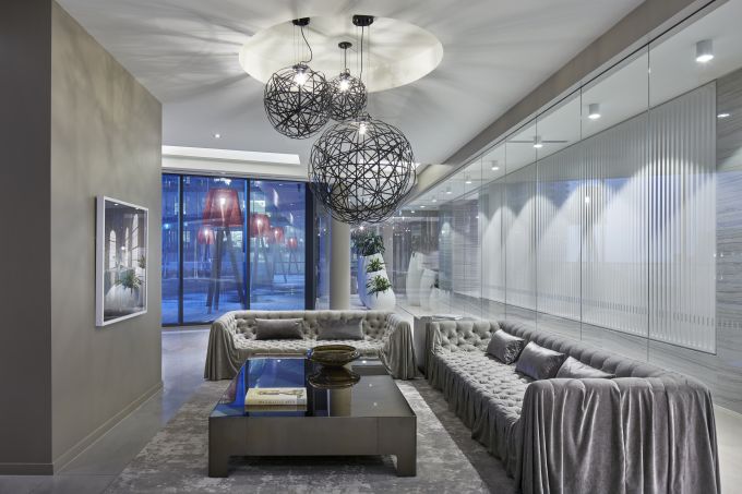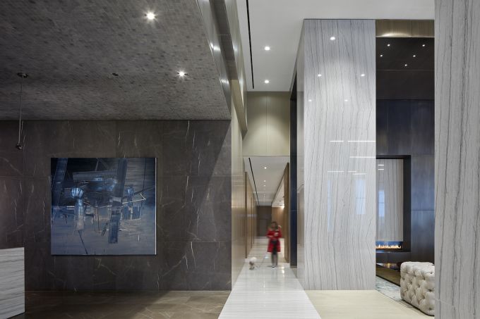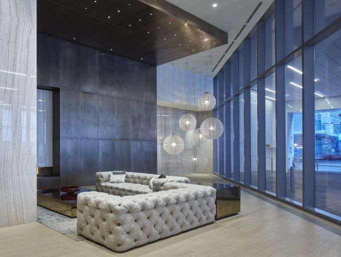 Taking cues from the classic architecture and nearby waterfront, Harbour Plaza condominium interiors feature contemporary lines inspired by nature. The project encompasses 30,002 s.f. of space, including two lobbies, two additional entrances, and a range of amenity areas throughout the building. Wanting to create a coherent style while weaving personality into every room, Cecconi Simone shaped a connected aesthetic that’s both architectural and unadorned, finding new uses for consistent materials throughout. The goal was to mirror the lines of nature in a way that led seamlessly into the outdoors, using a classic canvas against which standout elements could shine.