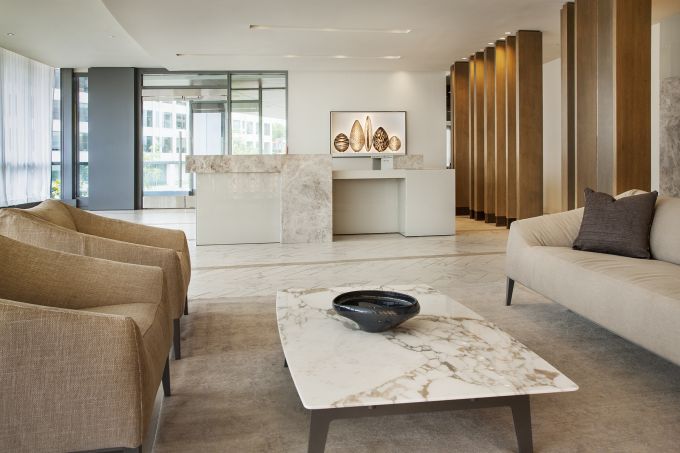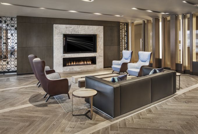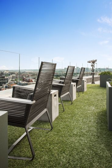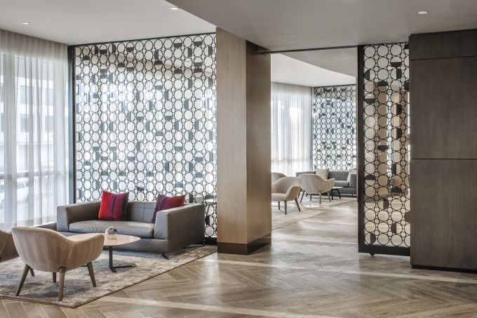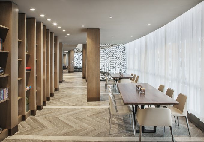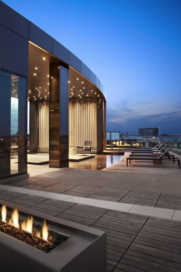 The Hepburn is a bold, contemporary residential building adjacent to the landmark Washington Hilton near Dupont Circle. Expansive views of the city are maximized with rooftop amenities including an indoor “Great Room” and multiple outdoor terraces and pool. A series of ground floor lounges and activity rooms create communal and intimate spaces, allowing residents to socialize with neighbors or relax in privacy.
