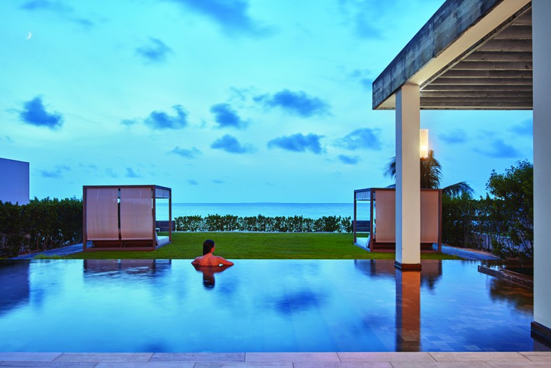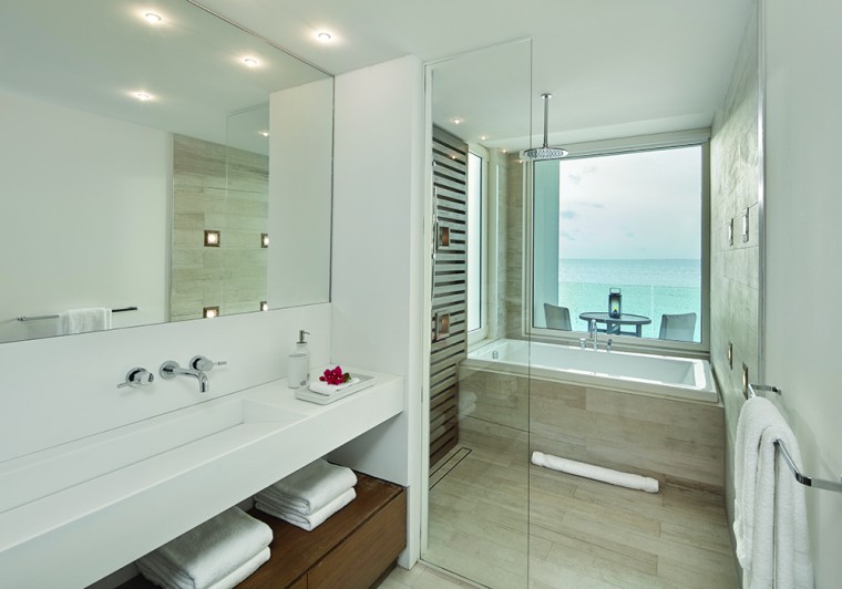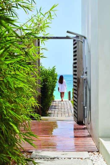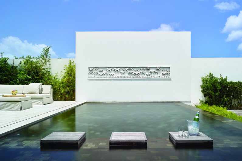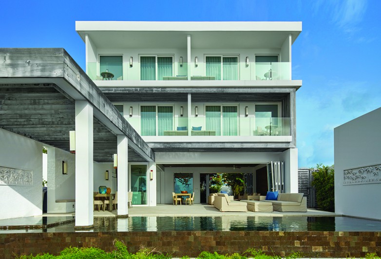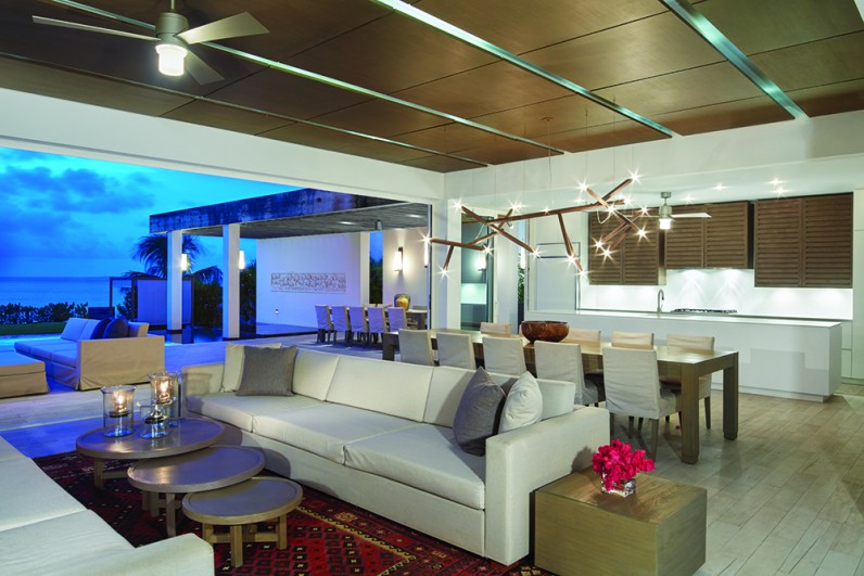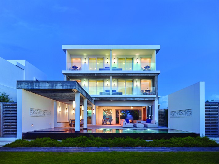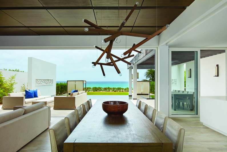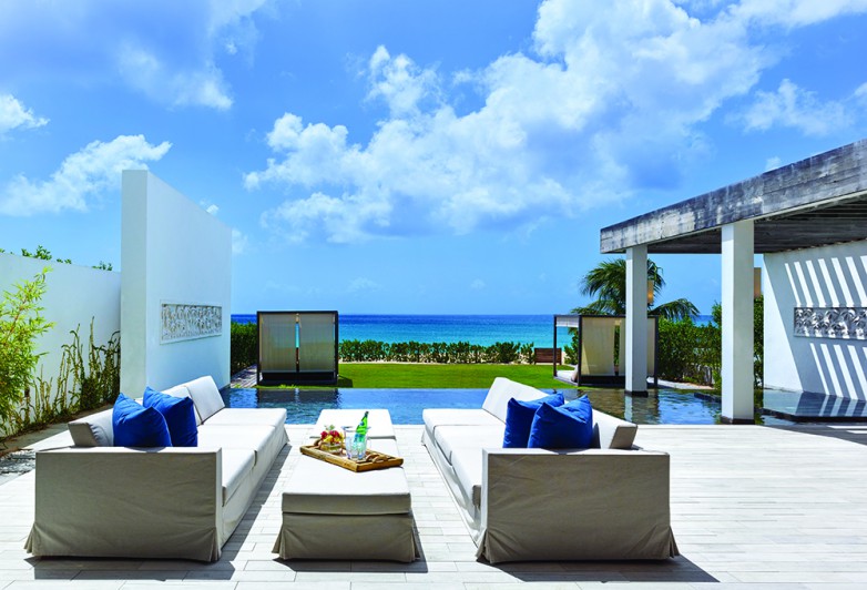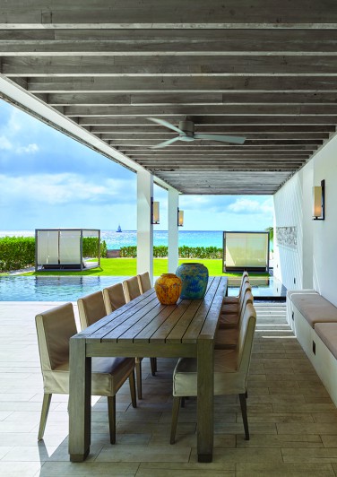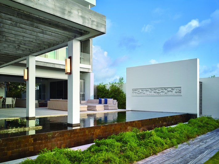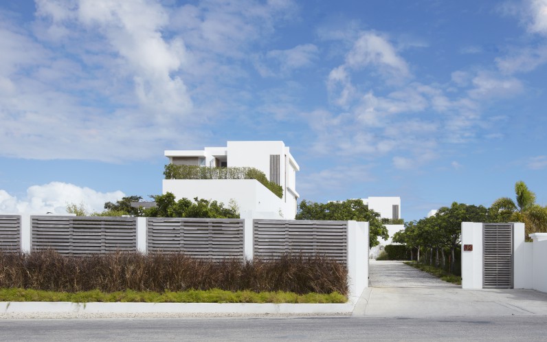Kishti on Meads is a luxury villa enclave on fashionable Meads Bay Beach in the Caribbean island of Anguilla. The villa with six main bedrooms has ensuite bathrooms offering garden or ocean views, rooftop and courtyard gardens, an infinity pool with ocean view beyond, and a hot tub. The five-bedroom villa includes one master suite with his/her bathrooms and dressing areas. Each villa complex comprises 4,650 square feet of interior and 4,372 square feet of terrace and outdoor living space. From grand gestures, such as view corridors, to details, every aspect of the project reinforces the prevailing understated, relaxed contemporary minimalism.