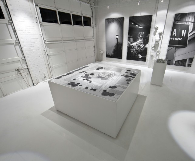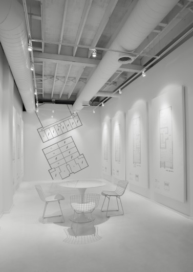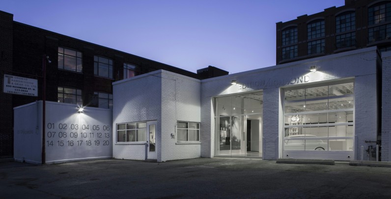 The unassuming garage of the former “Toronto Transmission & Gear Company” furnished a serendipitous opportunity to create a sales centre with unique resonance. Its adaptable, open plan allowed for a novel progression, away from typical sales-centre sequencing, with expansive gallery first and contained model suite second.